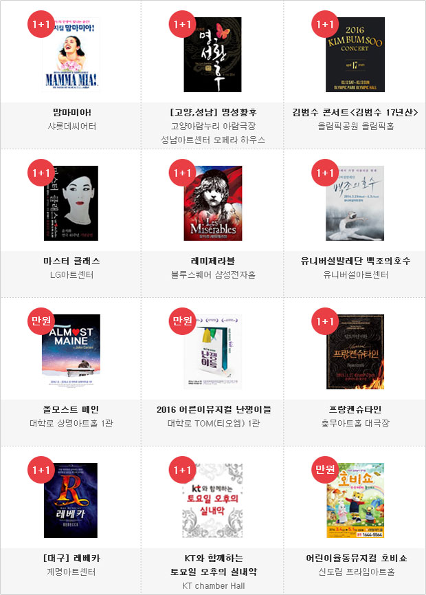 공연 티켓 1+1 또는 만원의 행복