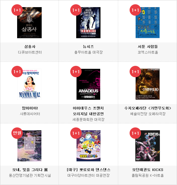 공연 티켓 1+1 또는 만원의 행복
