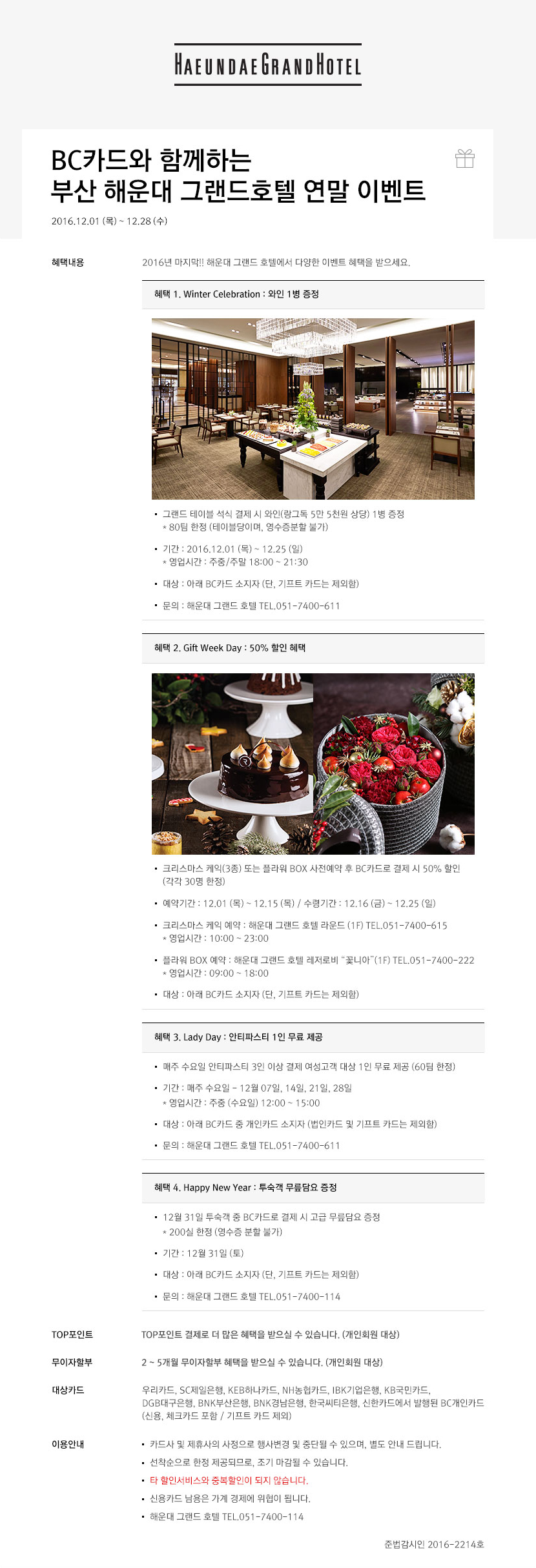 BC카드와 함께 하는 부산 해운대 그랜드 호텔 연말 이벤트