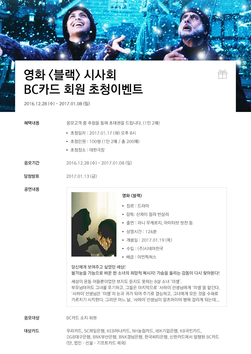 영화 <블랙> 시사회 BC카드 회원 초청 이벤트