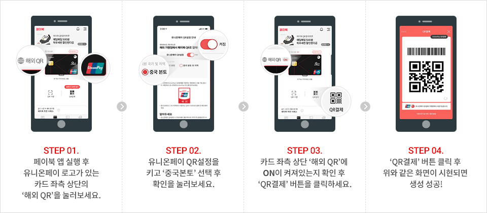 ※ 국내 QR 결제와 달리, 해외 QR 결제 화면에는 바코드와 QR 코드가 함께 있습니다.