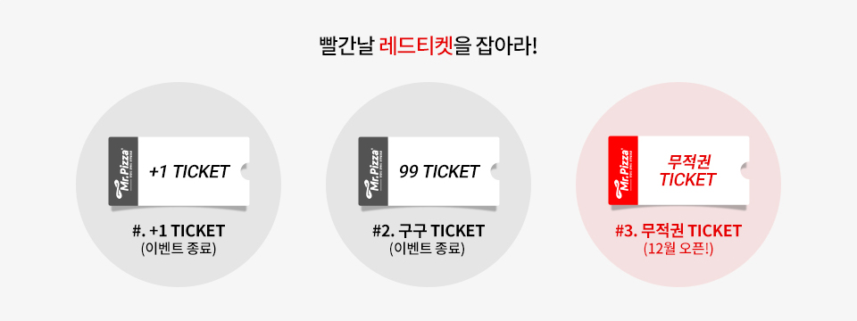행사 1. 빨간날 미스터피자 주문하면 30명에게 무적권 TICKET 추첨을 통해 증정!