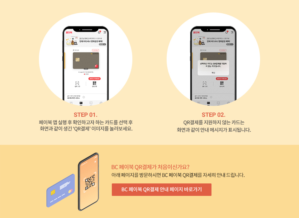 - BC 페이북 QR결제가 가능한 개인 신용 및 체크카드 (법인, Gift카드 제외)