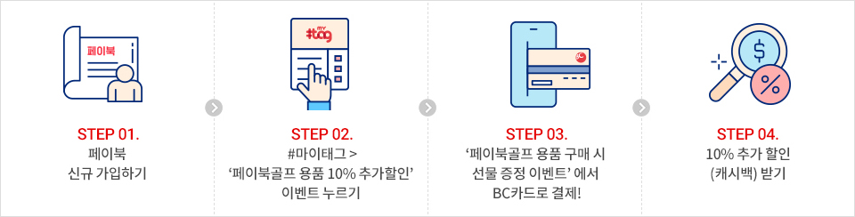 페이북 신규 가입하고, BC카드 or 페이북에서 #마이태그 '페이북골프 용품 추가 10% 할인' 태그한 고객님들 전원에게