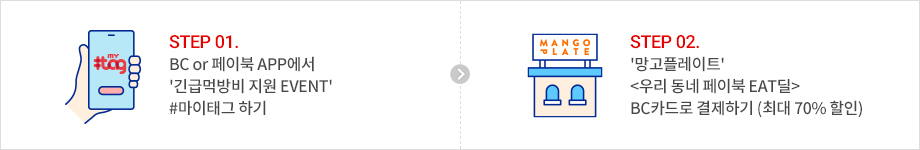 - STEP 01. BC or 페이북 APP에서 '긴급먹방비 지원 EVENT' #마이태그 하기