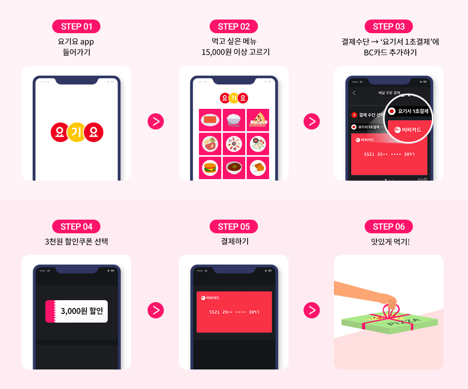 - STEP 03. 결제수단 > '요기서 1초결제'에 BC카드 추가하기