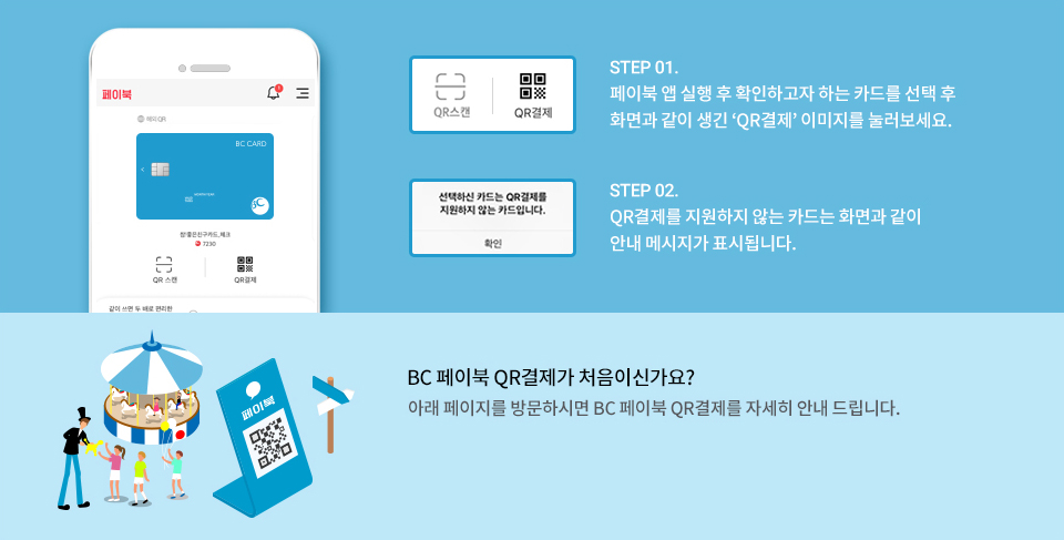 BC 페이북 QR결제가 처음이신가요? 아래 페이지를 방문하시면 BC 페이북 QR결제를 자세히 안내 드립니다.